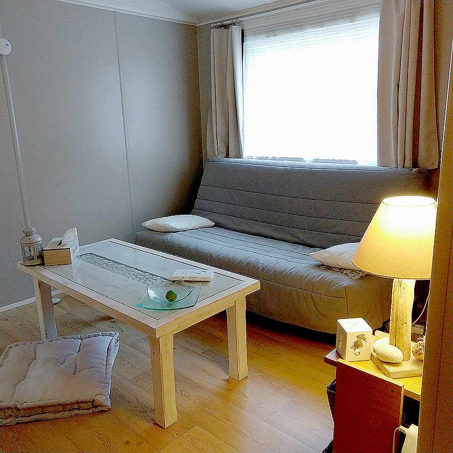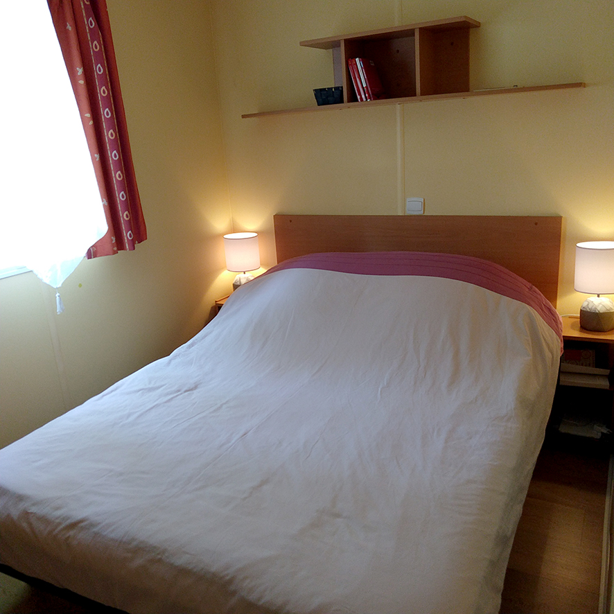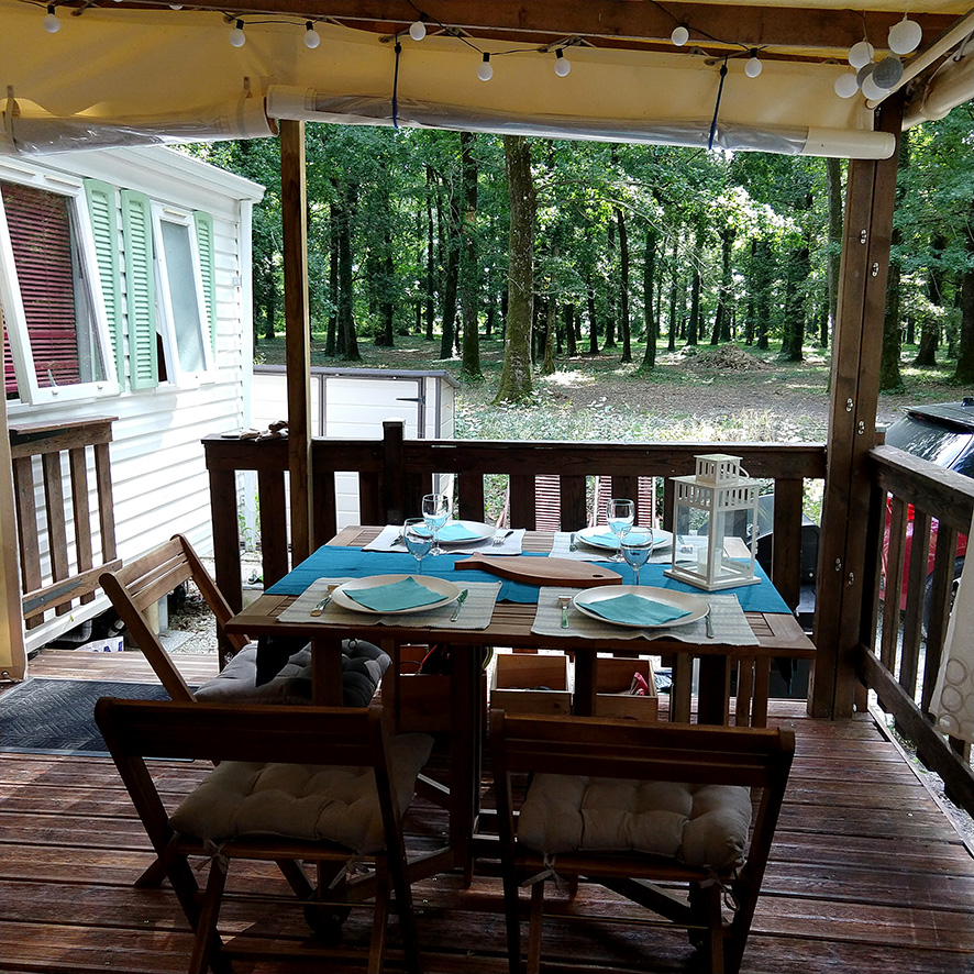 Notre mobile home dispose d’un emplacement privilégié, sur une parcelle de 150 m2 avec vue dégagée sur un bois de chêne.