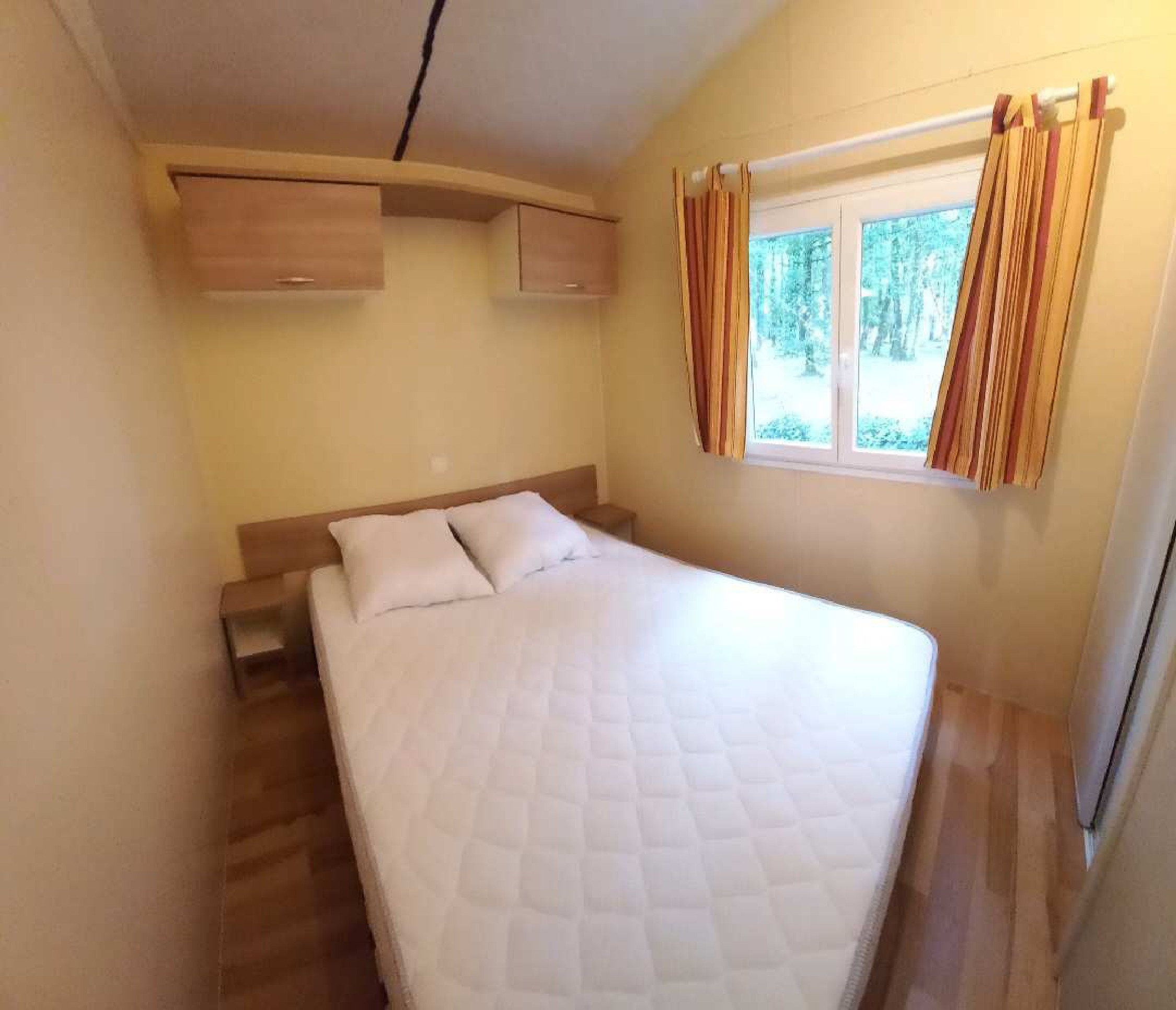 Notre mobile home dispose d’un emplacement privilégié, sur une parcelle de 150 m2 avec vue dégagée sur un bois de chêne.