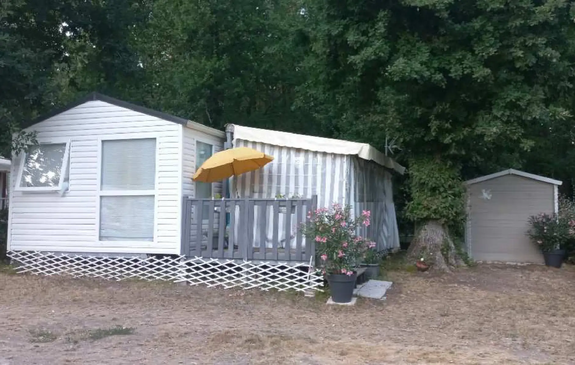 Nos mobil-homes près de Royan sont idéals pour des vacances confortables en famille ou entre amis. Ils disposent de 2 ou 3 chambres et sont installés sur de grandes parcelles boisées d’environ 150 m², offrant espace et tranquillité à chaque hébergement. Chaque mobil-home bénéficie d’un cadre agréable, propice à la détente, tout en restant proche des services et des animations du camping. Vous profitez également d’une terrasse équipée d’un salon de jardin et d’un parasol, parfaite pour partager des repas en extérieur ou simplement savourer le soleil de Charente-Maritime. Un hébergement confortable et fonctionnel pour profiter pleinement de votre séjour près de Royan.